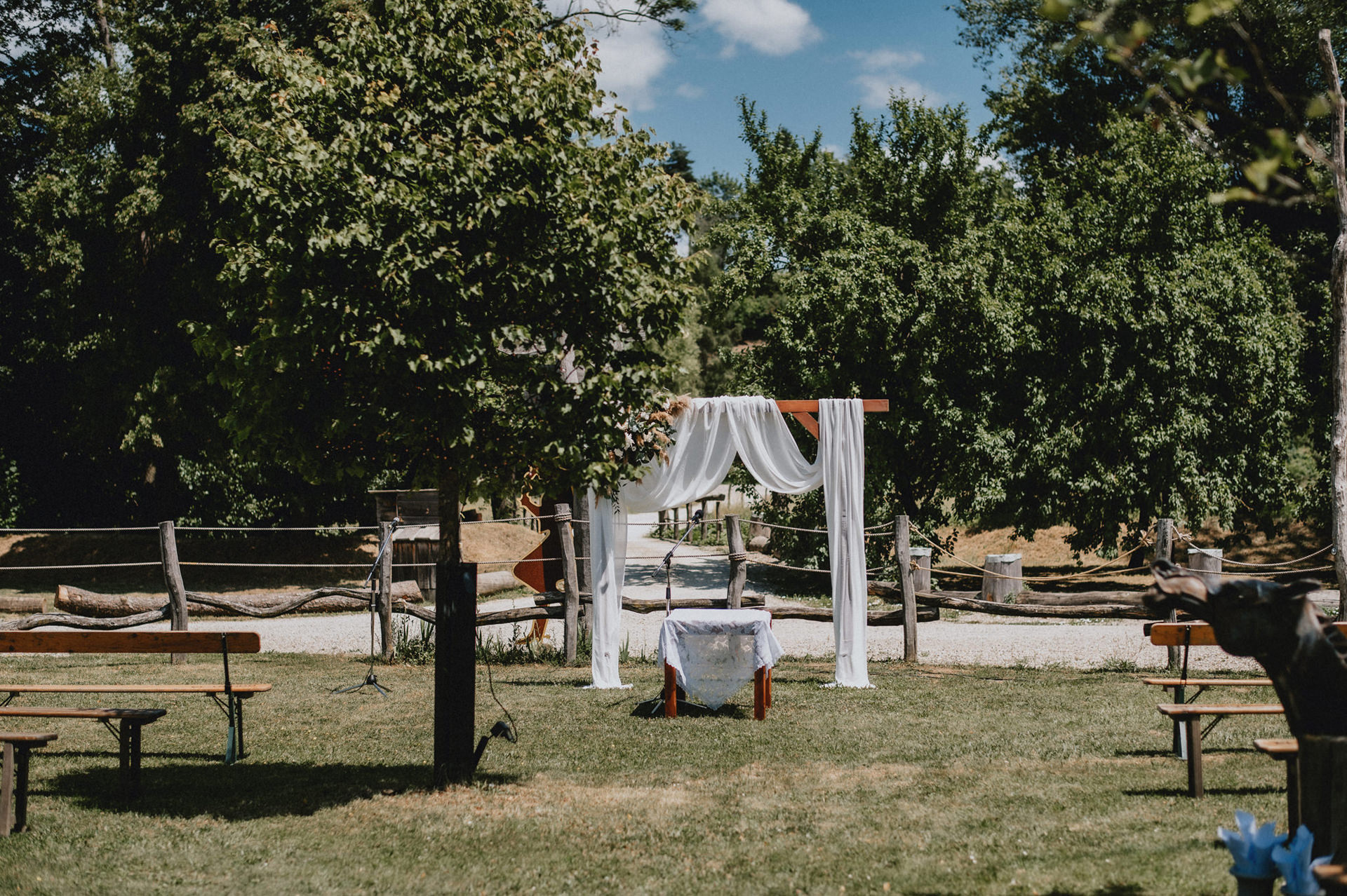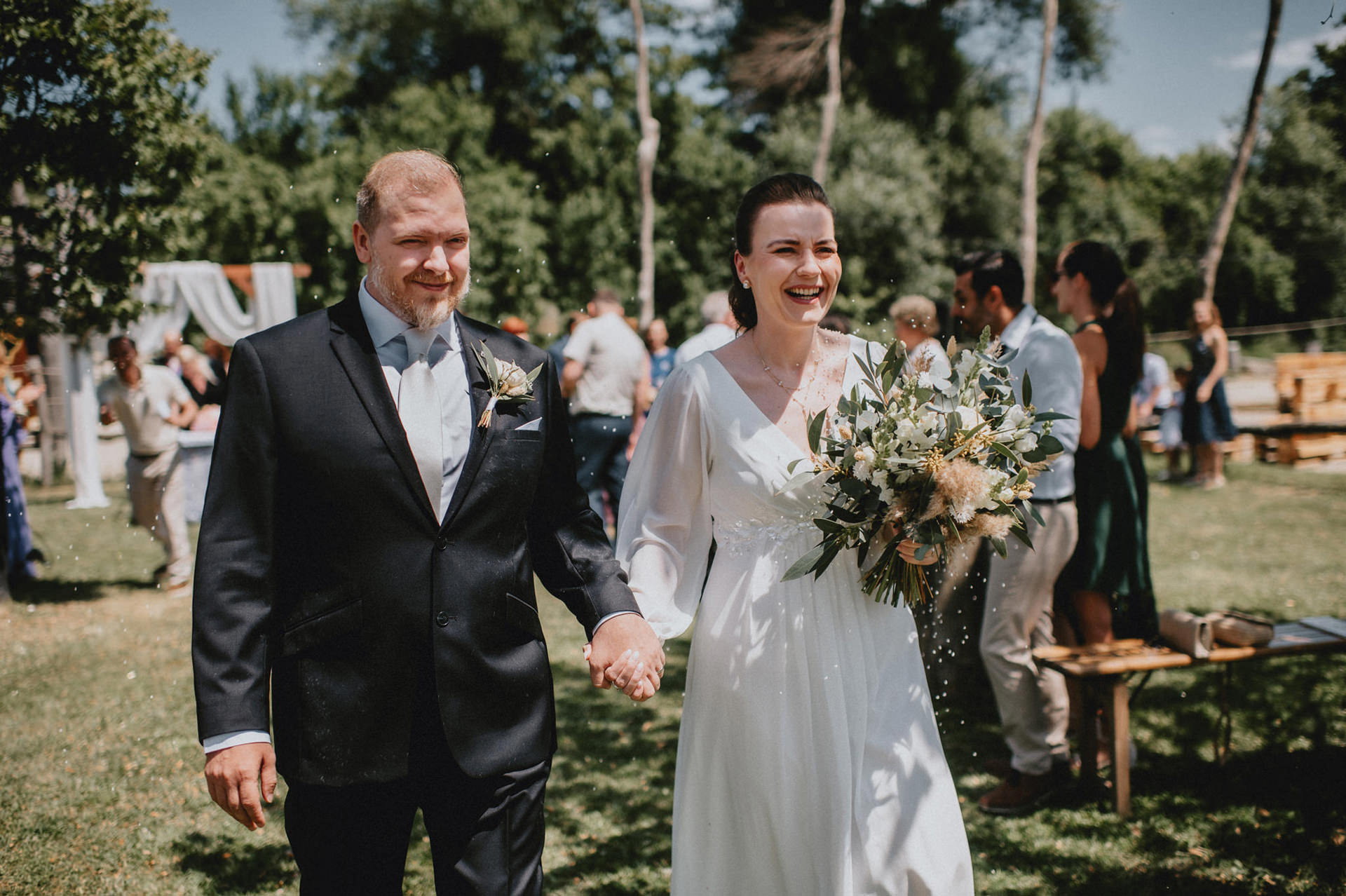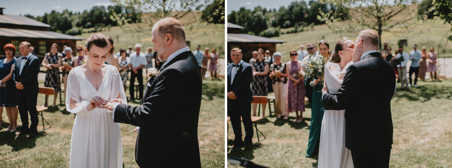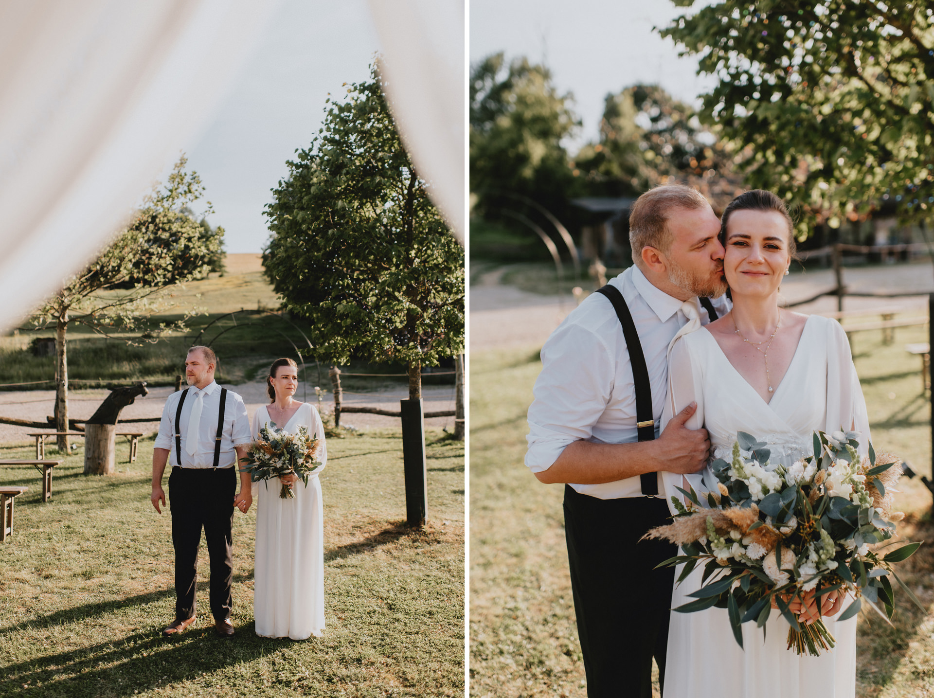 Celý deň bol plný ľahkosti, radosti a prirodzených emócií. O krásnu výzdobu sa postarala skvelá Lenka z Anemones wedding, ktorá dotvorila miesto do jemného, elegantného štýlu. A keď prišiel večer, tancovalo sa pod holým nebom – presne tak, ako to má na letnej svadbe byť.